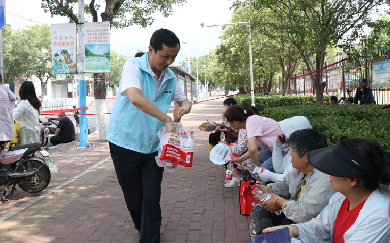 此外,除了关怀考生家长,志愿者们还将关怀送给了辛勤护考的执勤人员,感谢他们的坚守与付出。“连续执勤确实辛苦,但社会各界同心护考的氛围,让我们倍感温暖,只要考生能安心应考,再累都值得!” 一位执勤交警打开递来的矿泉水,笑着说道。