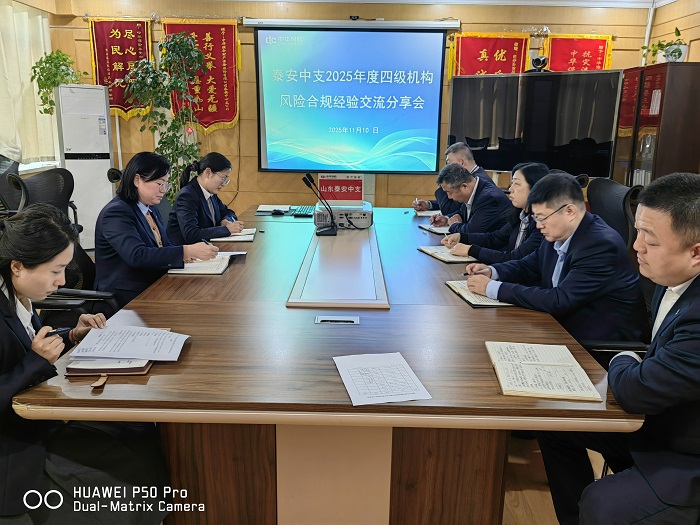 11月10日,中华财险泰安中支组织召开2025年度四级机构风险合规经验交流分享会,风险合规管理部门负责人、合规专岗人员、四级机构负责人及合规兼岗人员参会。