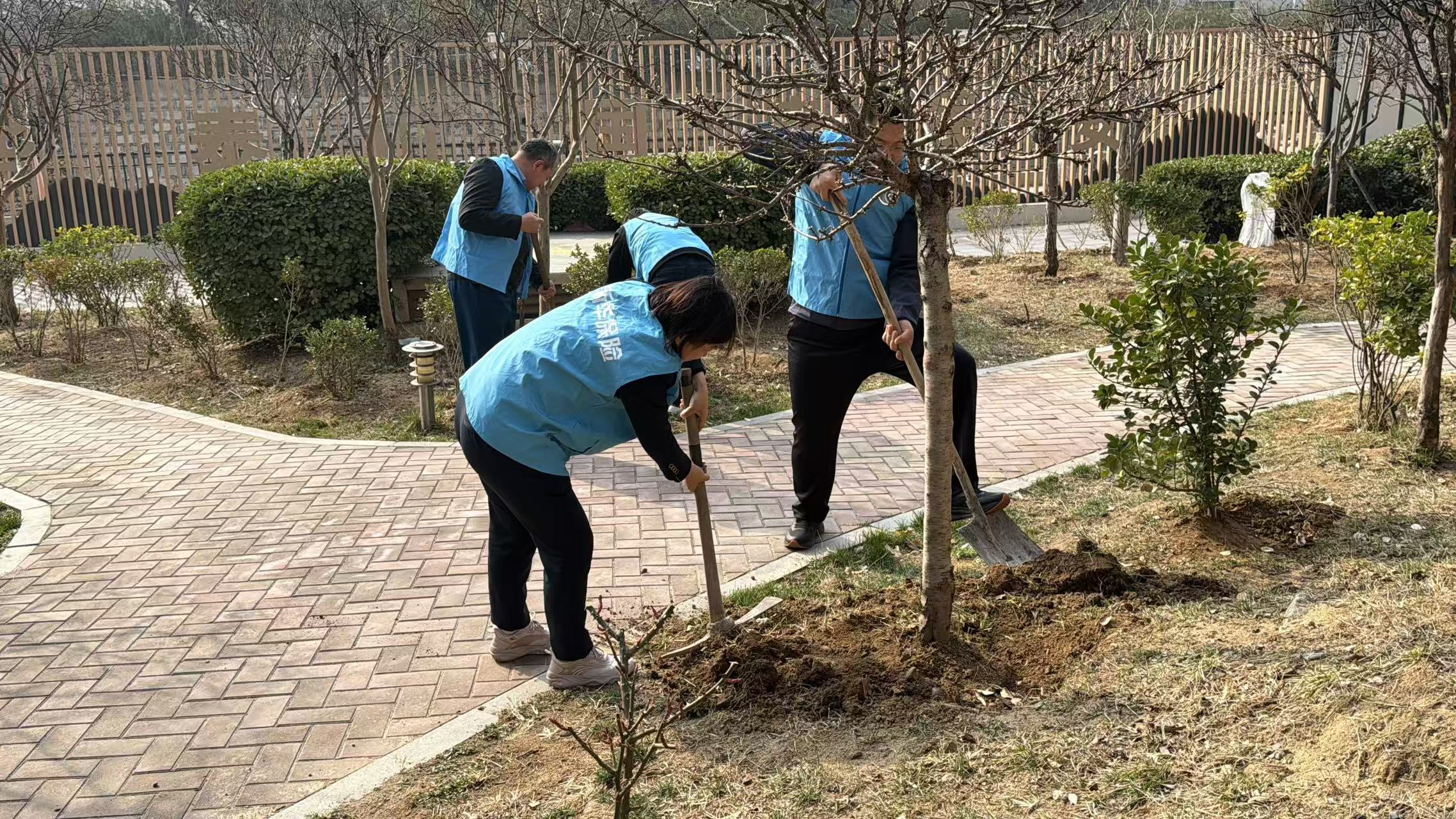 活动当天,新华保险泰安中支的志愿者们早早来到指定区域,与物业工作人员汇合。在简要的任务分配和安全提示后,大家迅速投入到劳动中。针对社区内部分枯萎、损坏、存在安全隐患的树木,志愿者们配合专业人员进行了仔细清理,为后续栽种做好准备。随后,大家分工协作,挥锹铲土、扶苗填坑、提水浇灌,每一个环节都一丝不苟,现场呈现出一派热火朝天的劳动景象。经过共同努力,一株株新栽种的树苗迎风挺立,为初春的社区增添了勃勃生机。