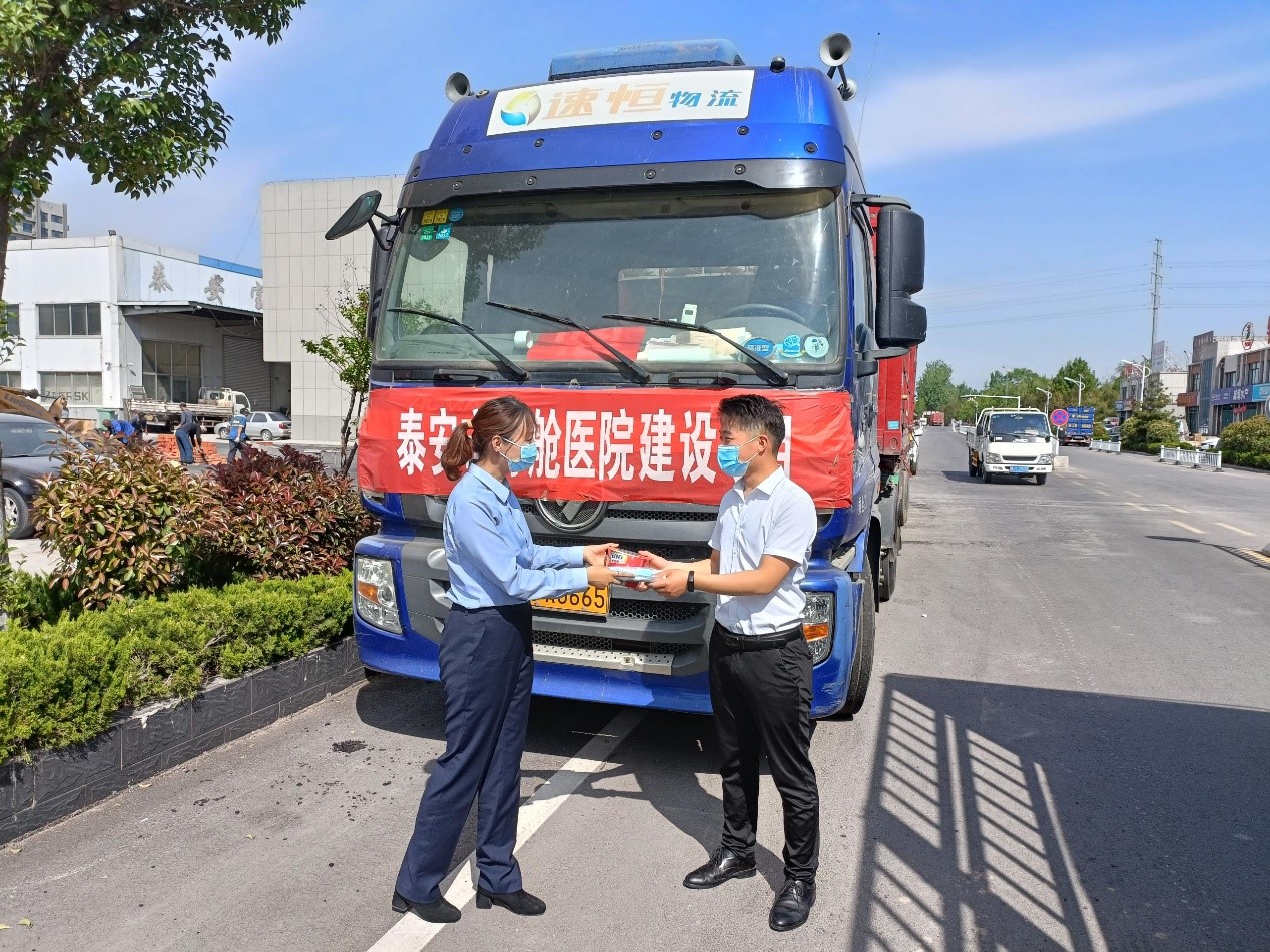 经事先调研,受本地疫情防控政策所限,无法在高速路口开展该项活动,公司积极联络市防疫指挥部门,了解到疫情防控期间泰安速恒现代物流园系市区东郊指定货运物流消杀地和装卸地,公司在该物流园门口搭建了线下“心服务”驿站,为支援疫情防控的货车司机赠送自热锅、方便面、饮用水以及口罩、消毒液等防疫物资。同时了解到泰安速恒物流有限公司承接了支援泰安方舱医院建设项目,“心服务”驿站爱心专员主动为承运车辆提供了安全检测、添加玻璃水等服务,收到了来自物流园区工作人员的高度称赞以及过往车辆驾驶员的一致好评。