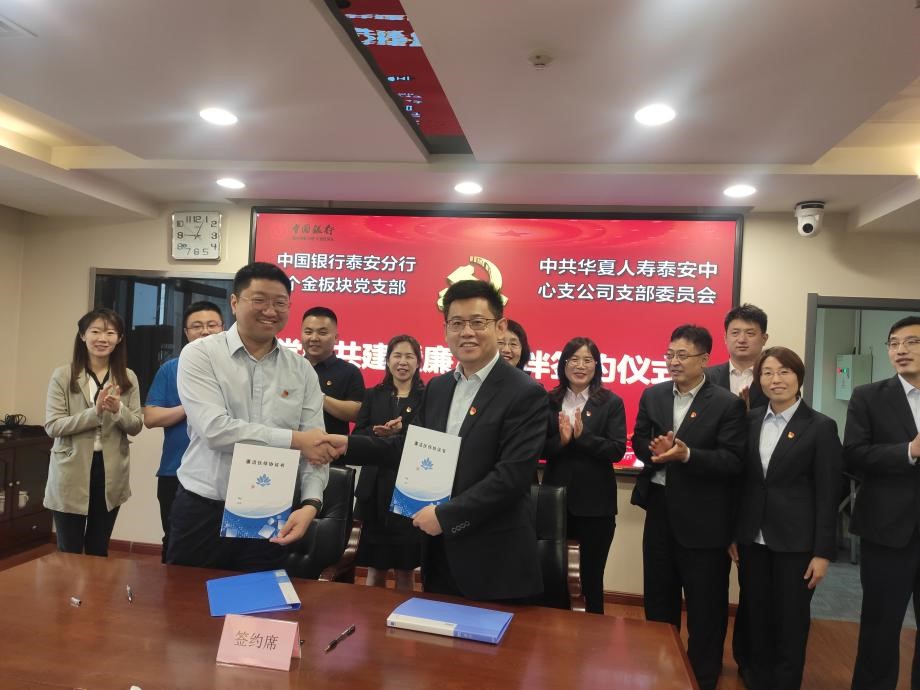 聚焦党建工作 推动合作发展 -华夏保险泰安中支与中国银行泰安分行签署党建共建合作