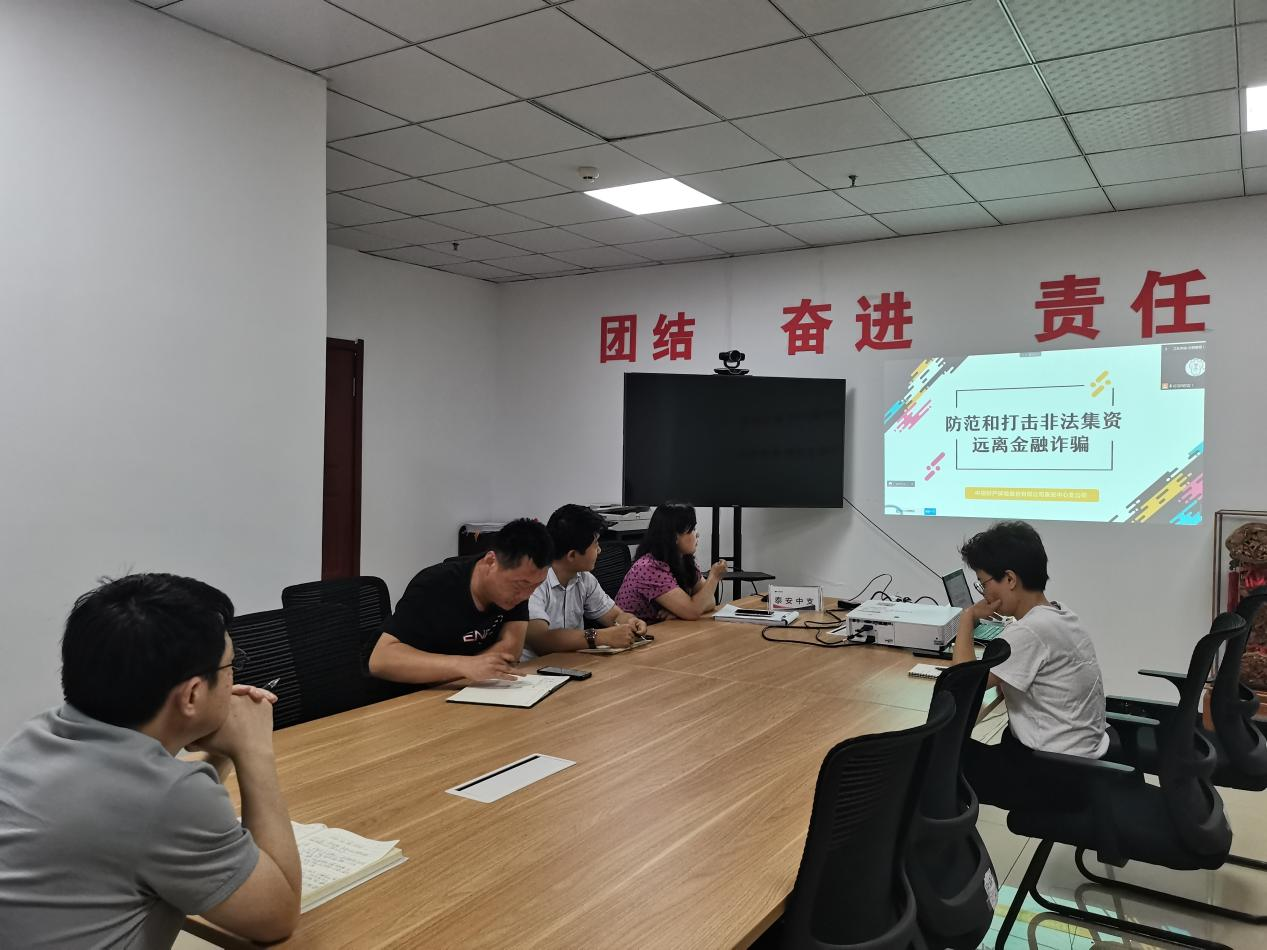 1.组织开展培训。中路财险泰安中支总经理室组织开展以“防范和打击非法集资,远离金融诈骗”为主题的培训,全体员工参培,会上总经理室就非法集资的特征、主要表现形式、常见手段、社会危害,以及从事非法集资活动会受到的法律处罚等方面进行宣导,警示全体员工,防范和打击非法集资,远离金融诈骗。