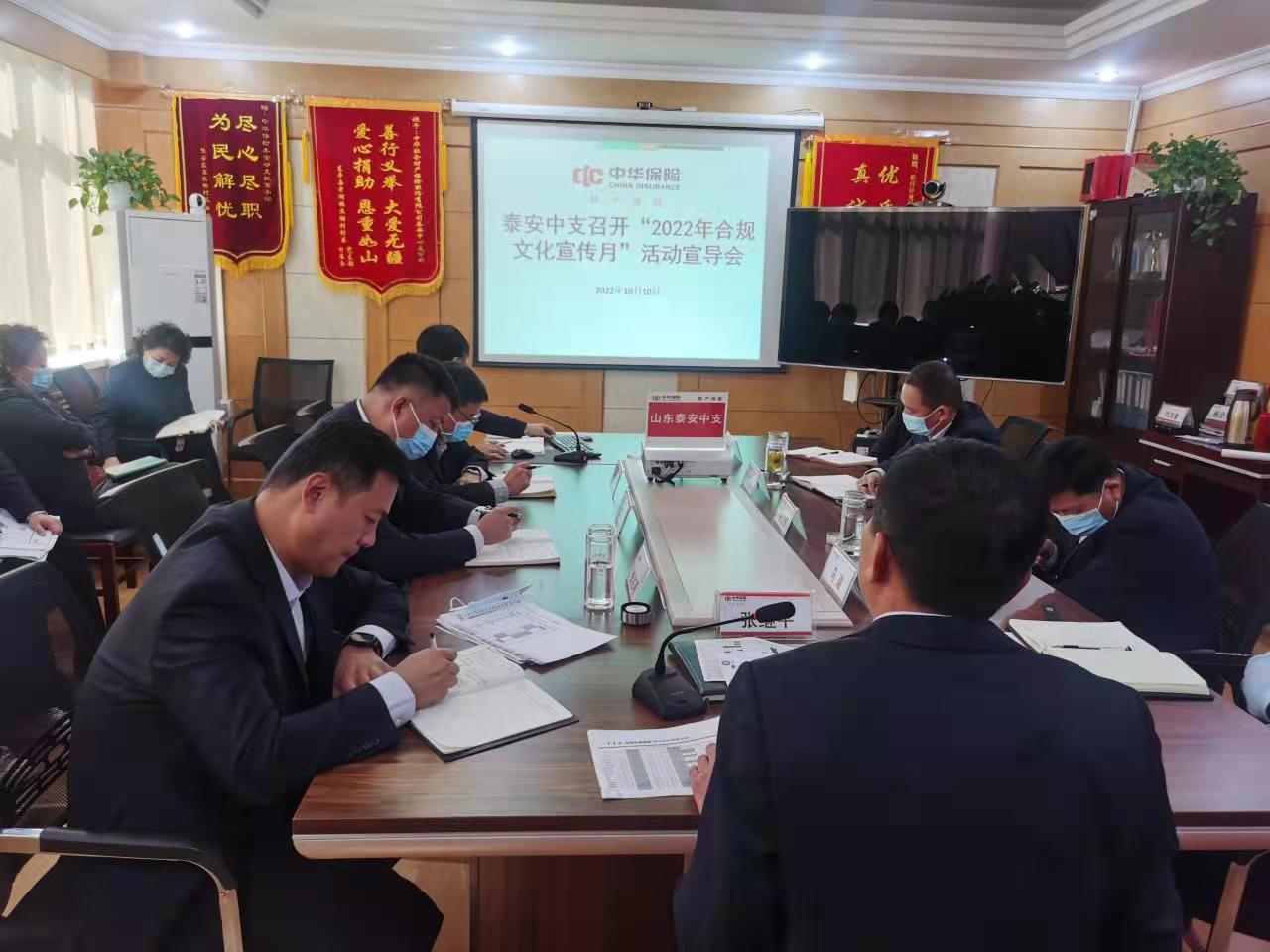 中华财险泰安中心支公司召开“2022年合规文化宣传月”活动宣导会