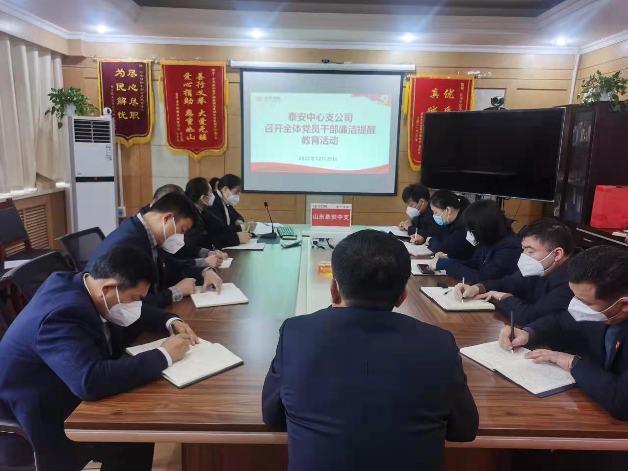 2022年12月26日,中华财险泰安中支组织全体党员干部开展廉洁提醒教育活动。