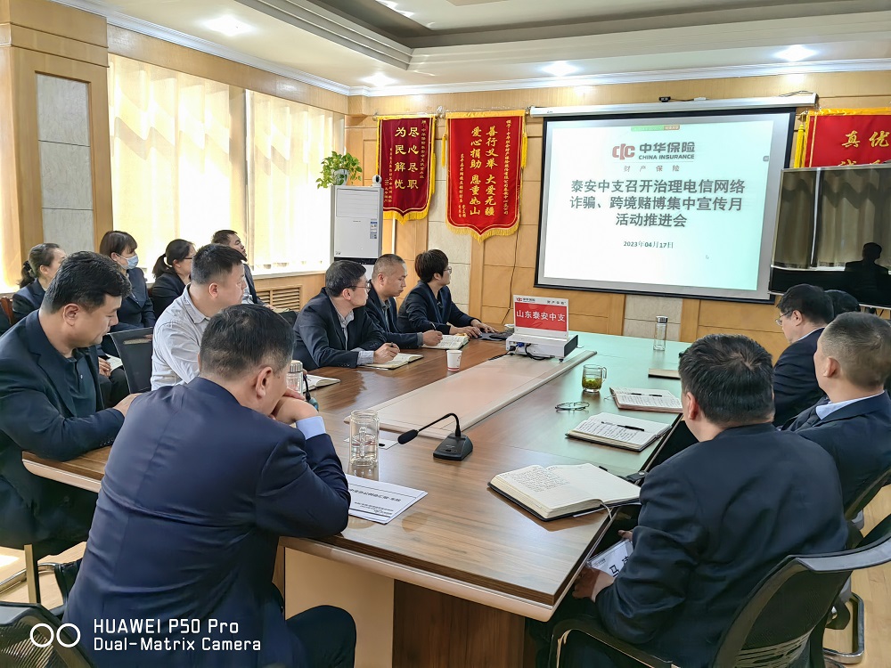 中华联合财险泰安中心支公司召开治理电信网络诈骗、跨境赌博集中宣传月活动推进会