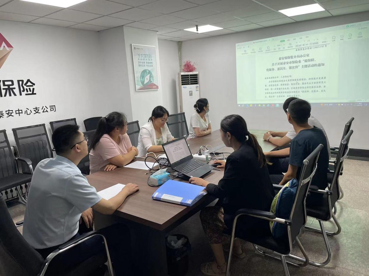 为贯彻落实泰安银保监分局办公室关于开展泰安市保险业“提保障、优服务、惠民生、强宣传”主题活动的通知》(泰银保监办便函〔2023〕85号)的相关精神,6月9日早上,大家财险泰安中支召开专题会议,泰安中支本级员工现场参会,四级机构人员线上参会。