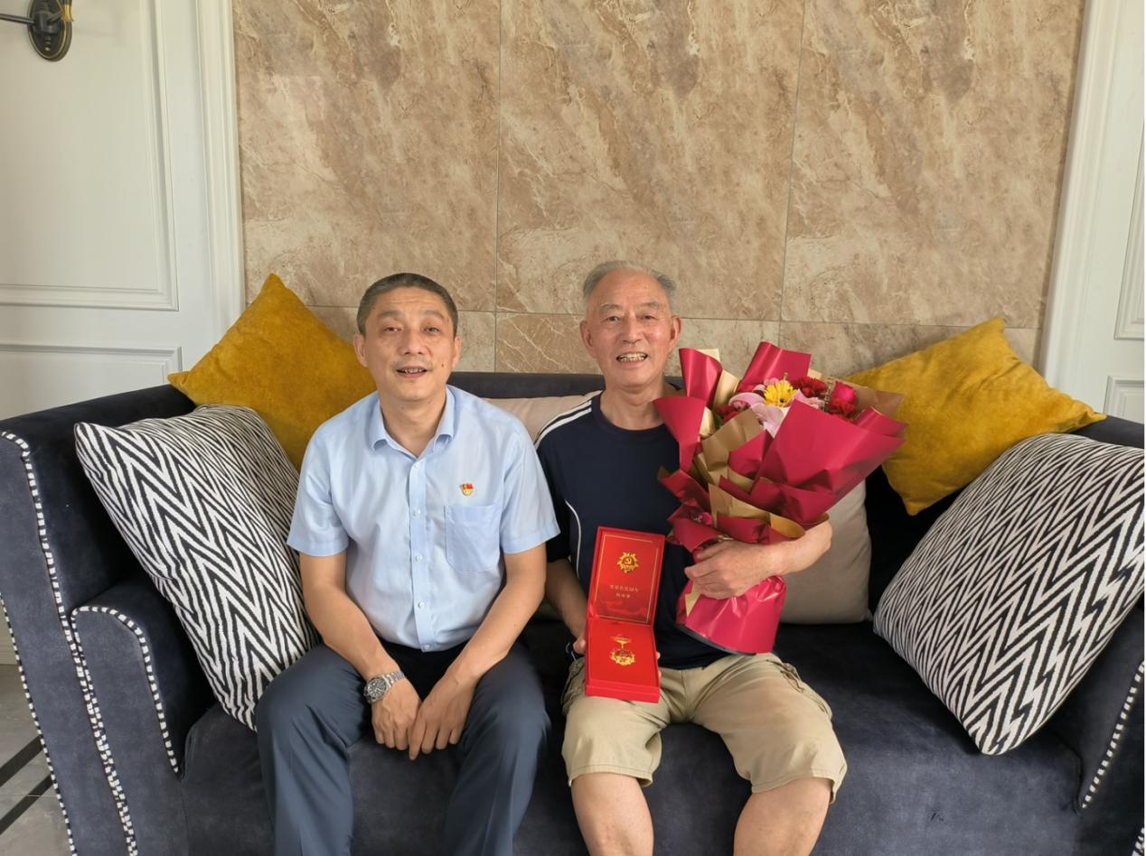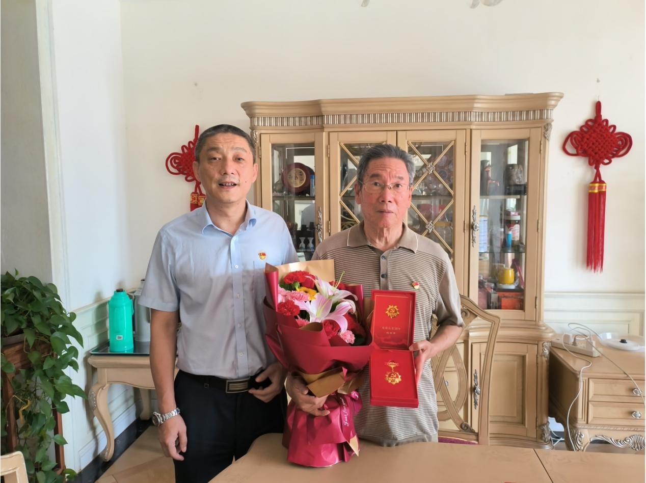 7月3日上午,中国人寿泰安分公司党委书记、总经理赵赛同志先后来到两位老同志家中,将沉甸甸的“光荣在党50年”纪念章颁发给韩传栋、王业营同志,并向他们表示热烈的祝贺和崇高的敬意,对他们为党和国家的发展所做的贡献表示衷心的感谢。