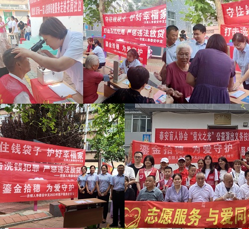 农银人寿泰安中支的工作人员作为志愿者参加了本次主题活动。活动中,志愿者向盲人朋友和社区老人讲解金融知识,对养老骗局、电信诈骗、非法集资、反洗钱等容易给社会公众造成侵害的非法金融活动进行提示与宣传,提高特殊社会群体的防骗意识和自我保护能力,受到了盲人朋友和老年人的热烈欢迎。