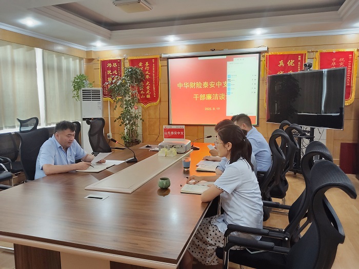 8月19日,中华财险泰安中支纪委书记通过集体谈话形式,对8名新任职干部开展廉洁谈话,为其讲授专题廉政教育课,进一步筑牢新任职干部廉洁从业思想防线。