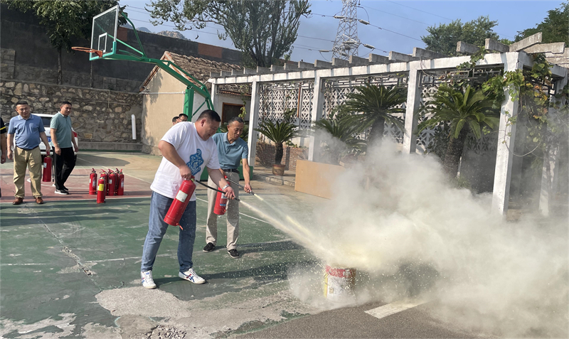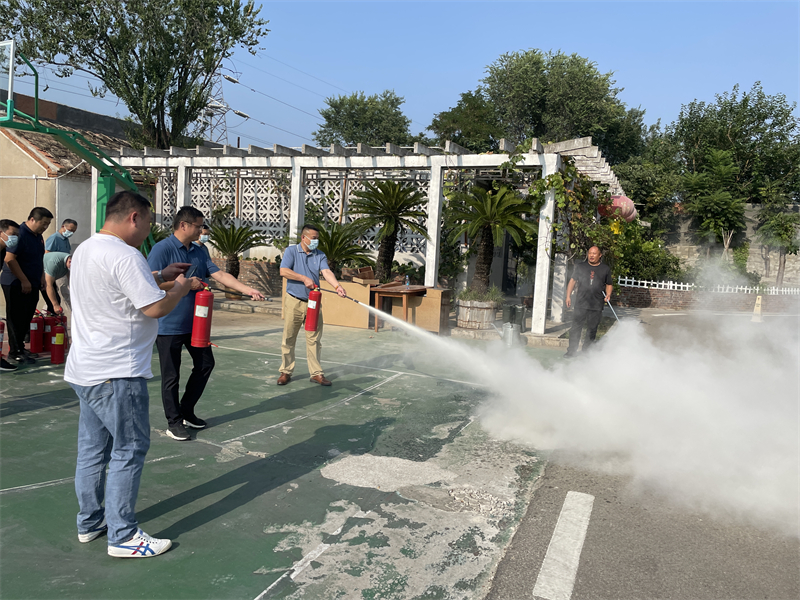 最后,全体人员来到户外,开展了消防灭火实战演练。