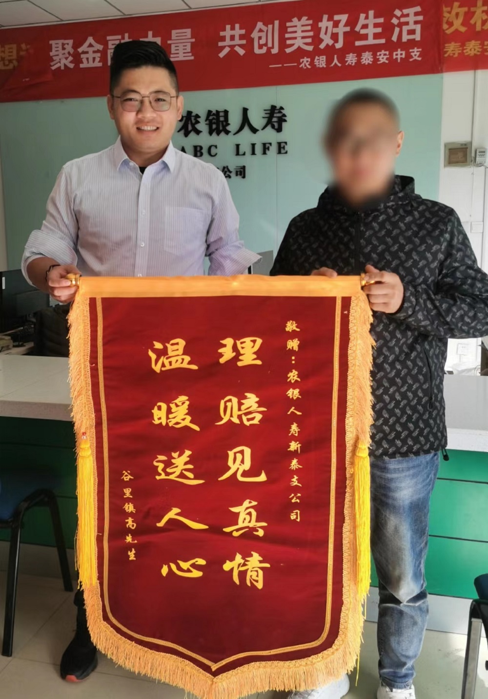 立冬的节气刚过,天气突然转冷,让人猝不及防。在农银人寿新泰支公司柜面,因为一位“特殊”访客的到来,却呈现出一片温暖感动的景象。谷里镇的高先生来到公司柜面送上感谢锦旗,“理赔见真情,温暖送人心”的金字赠语,体现了客户对该公司的感激之情。