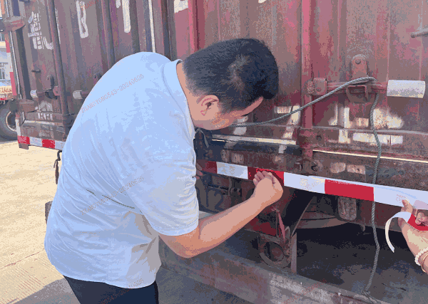 在实际操作中,严格按照规范流程进行反光贴的贴装工作。工作人员首先对车辆进行了全面检查,确保车辆表面干净、平整,无油污、锈迹等障碍物。随后,按照预定的位置和尺寸进行反光贴的贴装,确保每个反光贴都牢固、平整、无气泡。贴装完成后,双方还进行了严格的验收工作,确保反光贴符合标准要求。