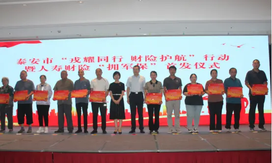 在“八一”建军节来临之际,为进一步推进新时代社会化拥军工作,不断拓展优化社会化双拥内容,山东省泰安市退役军人事务局与中国人寿财险山东省泰安市中心支公司联合举办“戎耀同行 财险护航”行动暨国寿财险“拥军保”首发仪式。泰安市和所属县区双拥办、退役军人事务局,泰安军分区政治工作处,中国人寿财险泰安市中心支公司和所属支公司负责人;荣立二等功以上现役军人、享受定期抚恤金的“三属”家庭代表参加首发仪式。