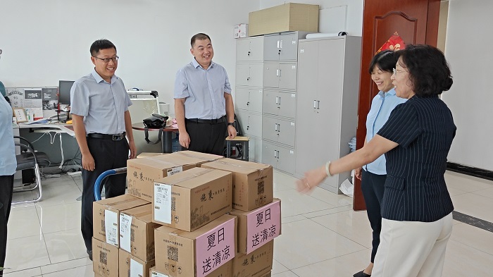 泰安中支副总经理、工会主任戚桂珍深入客服柜面和支公司一线,一句句暖心的问候,一件件清凉润心的矿泉水,进一步增强了员工的归属感和凝聚力,激发了大家的工作热情和积极性。同时,矿泉水是来自于新华保险定点帮扶——贵州省施秉县的原产地饮用水,这一举措不仅为职工送去了清凉,更以实际行动支持了帮扶地区的农产品销售。