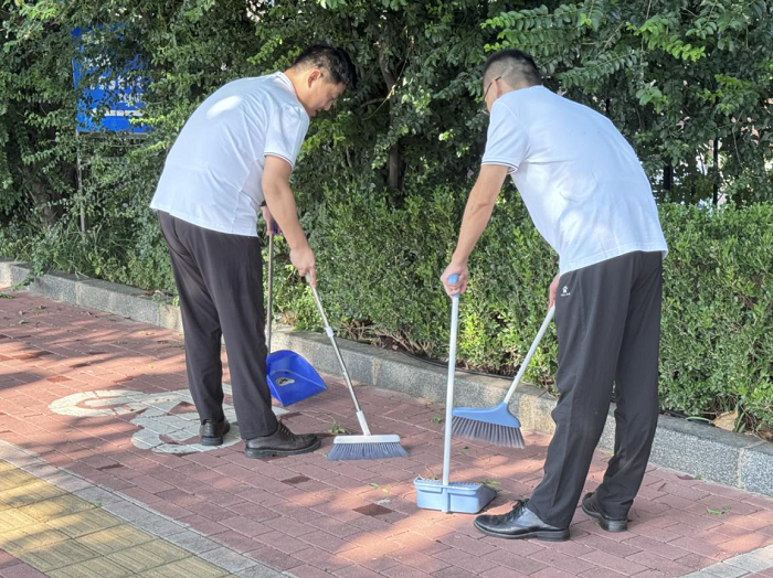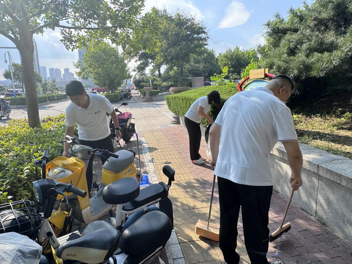 志愿服务时,党员同志们手持扫把、垃圾夹、垃圾袋,前往市政广场至法院路口区域开展清洁活动。大家热情高涨、专注投入,细致地搜寻并清理了隐藏在树坑中、草丛中的废旧垃圾袋、果皮纸屑、饮料瓶、烟蒂等垃圾,同时整齐摆放了沿街电动车和自行车。经过一个多小时的努力,周边环境显著改善,为我们的共同家园增添了一份和谐、一份干净、一份美好。