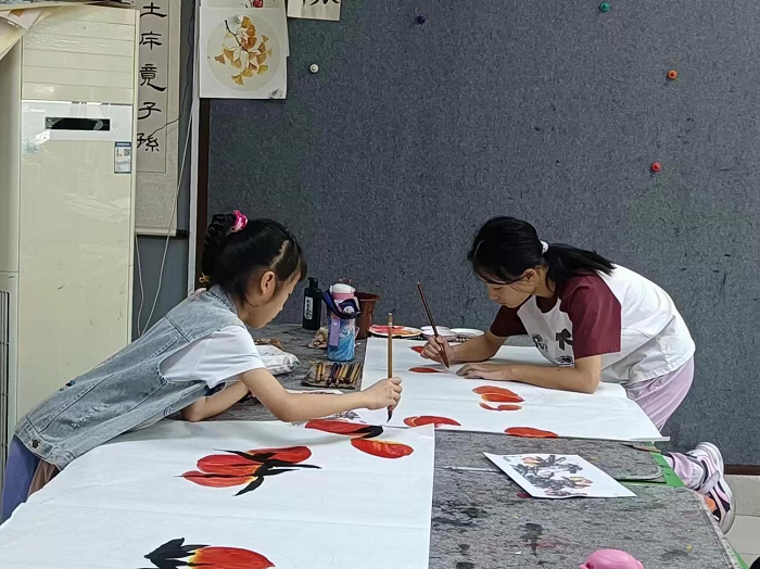 最后活动还特别设置了互动体验环节。小朋友们拿起画笔,在宣纸上尝试涂鸦,虽然笔触稚嫩,但那份对美的追求与热爱却溢于言表。
