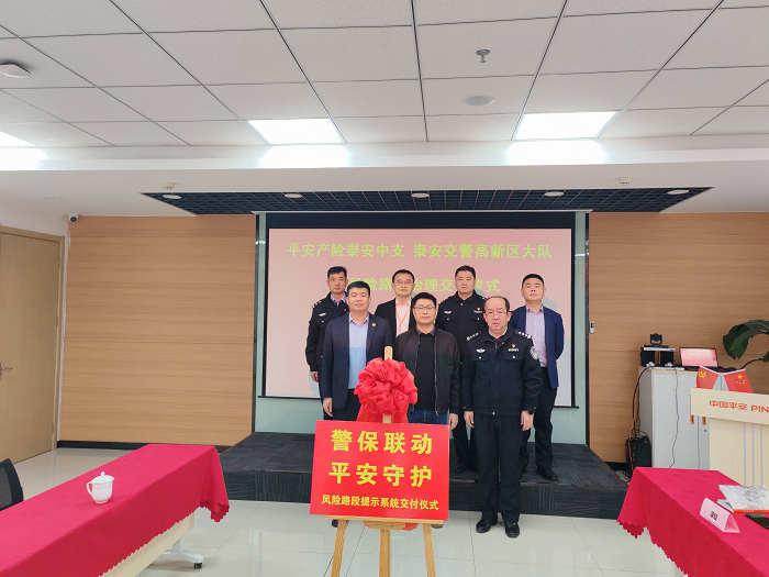 2025年1月9日,在平安产险泰安中支举行两处路口的治理交付仪式,泰安市公安局交警支队高新区大队大队长张涛、市保险行业协会副秘书长刘文阁、平安财险泰安中支总经理周滨等相关领导出席交付仪式。