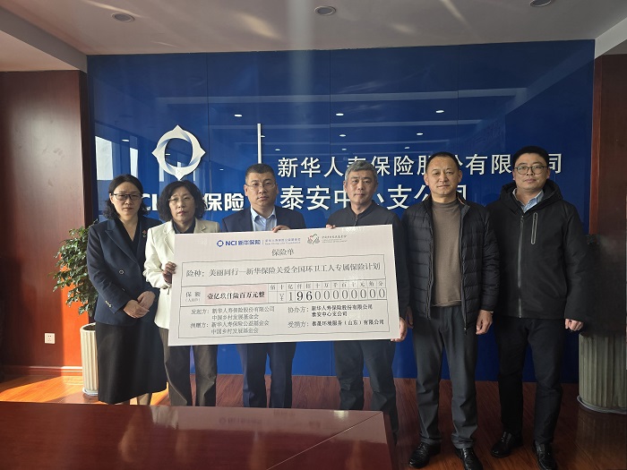 2025年2月25日,新华保险泰安中心支公司举办"同心守卫"环卫工人意外保障项目捐赠仪式,向市区1960名一线环卫工人每人捐赠保额10万元的人身意外伤害保险,总保障金额达1.96亿元。该公益项目旨在为城市环境守护者提供切实保障,传递社会关爱。