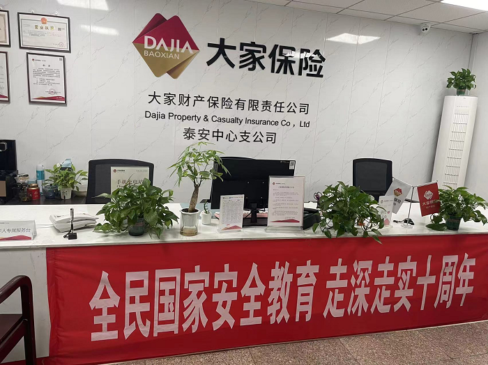 为了进一步增强全民国家安全意识,大家财险泰安中支积极组织开展全民国家安全教育日宣传教育活动。活动以各营业网点为中心,辐射周边区域进行教育宣传活动。