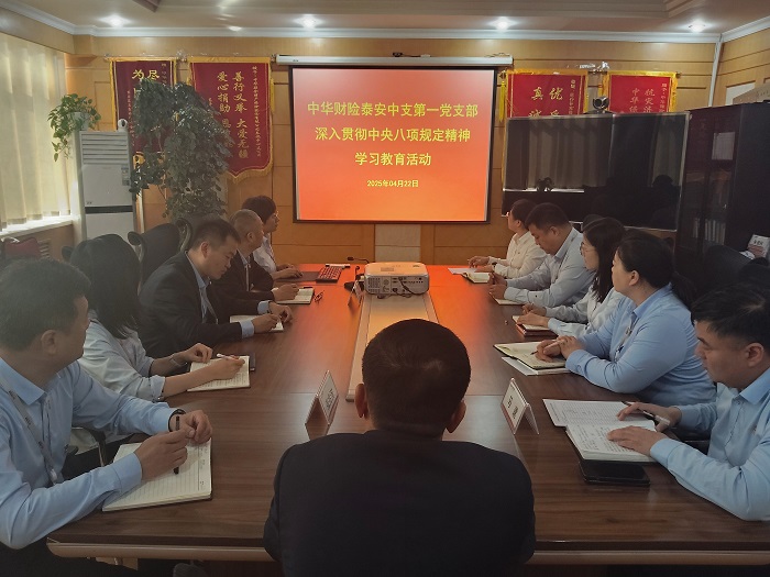 4月22日,中华财险泰安中支第一党支部召开深入贯彻中央八项规定精神学习教育活动。全体党员参加了会议。
