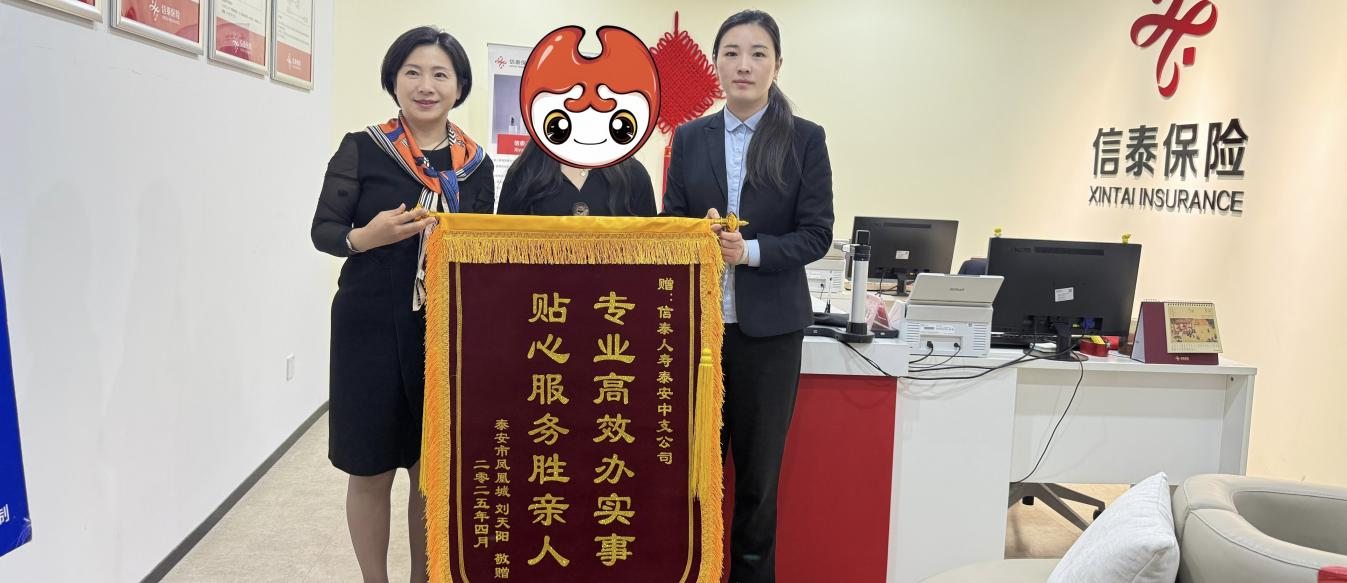 近日,信泰保险山东泰安中支成功完成一例重疾赔付案件,客户L女士一家专程送上“专业高效办实事 贴心服务胜亲人”的锦旗,并称赞信泰保险是把“有温度的保护伞”,为其家庭困境提供坚实支持。