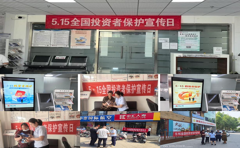 为营造良好的宣传氛围,中汇人寿泰安中支在宣传工作期间制作“5.15 全国投资者保护宣传日”条幅,在营业柜面张贴,并通过柜面一体机播放宣传海报,提升消费者认知度。开展户外宣传,同时对于临柜办理业务客户进行金融知识的宣传讲解,围绕"三适当"原则,向消费者普及各类金融产品的基础知识,帮助消费者掌握产品特点和相关风险,引导金融消费者结合自身需求,合理运用金融工具作出理财规划和投资决策,树立理性投资、价值投资观念。