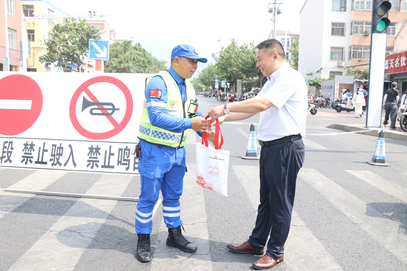 此外,除了关怀考生家长,志愿者们还将关怀送给了辛勤护考的执勤人员,感谢他们的坚守与付出。“连续执勤确实辛苦,但社会各界同心护考的氛围,让我们倍感温暖,只要考生能安心应考,再累都值得!” 一位执勤交警打开递来的矿泉水,笑着说道。