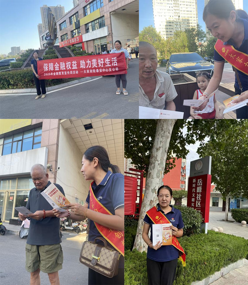 为提升公众金融素养,筑牢金融安全“防火墙”,大家财险泰安中支及下辖各四级机构以“保障金融权益 助力美好生活”为口号,启动“金融知识五进入”主题活动,将专业金融知识送进社区、校园、企业和商圈,让金融安全意识扎根生活每一处。