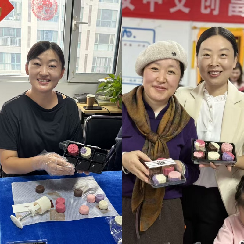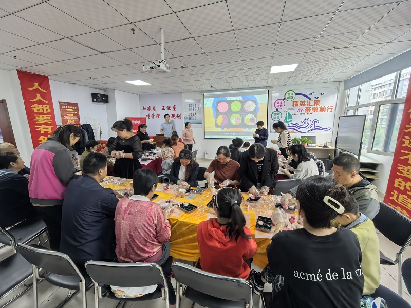 随后,活动进入了备受期待的月饼DIY环节。专业糕点师傅首先为大家详细演示了冰皮月饼的制作流程,从揉制饼皮、分割馅料,到压模成型,每一个步骤都讲解得细致入微。在师傅的耐心指导下,客户们纷纷化身“糕点大师”,兴致勃勃地动手操作起来。大家围坐在一起,相互交流制作技巧,分享生活趣事,现场气氛温馨而热烈。揉捏之间,包裹的不仅是香甜的馅料,更是对美好生活的期许;压模之时,定格的不仅是精美的图案,更是此刻欢聚的珍贵记忆。不一会儿,一个个造型精致、独具匠心的月饼便在大家的巧手中诞生,空气中弥漫着淡淡的奶香与甜香,每个人的脸上都洋溢着满足与喜悦的笑容。
