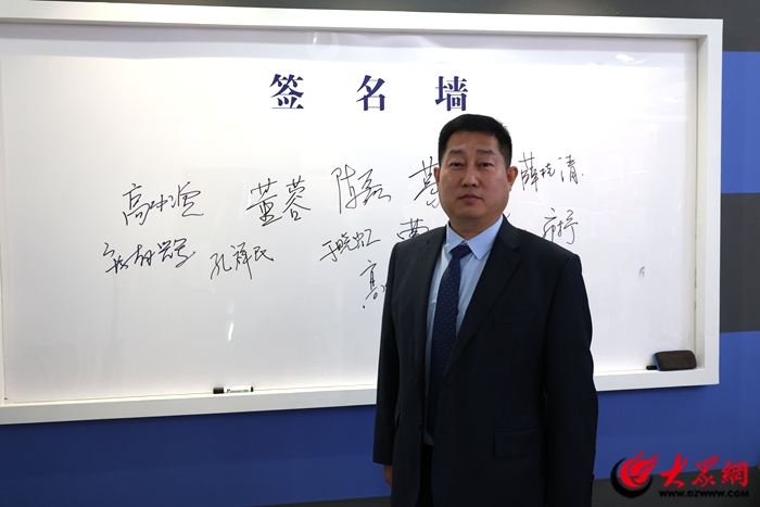 亚太财险泰安中支总经理陈磊做客大众网泰安演播室(记者 王磊 摄)