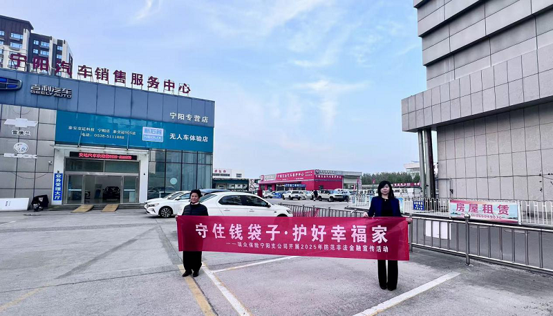 为有效遏制非法金融活动的滋生蔓延,进一步提升广大群众对非法金融活动的防范意识和识别能力,牢牢守护好市民的“钱袋子”,近日,瑞众保险泰安中支宁阳支公司精准聚焦汽车消费场景,在宁阳汽车销售服务中心开展2025年防范非法金融活动,将金融安全防护网织在消费一线。