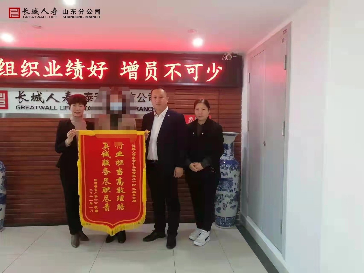 近日,长城人寿泰安中支收到一面锦旗——行业担当高效理赔,真诚服务尽职尽责,体现了客户对长城人寿产品的认可,更体现了客户对理赔服务的满意。