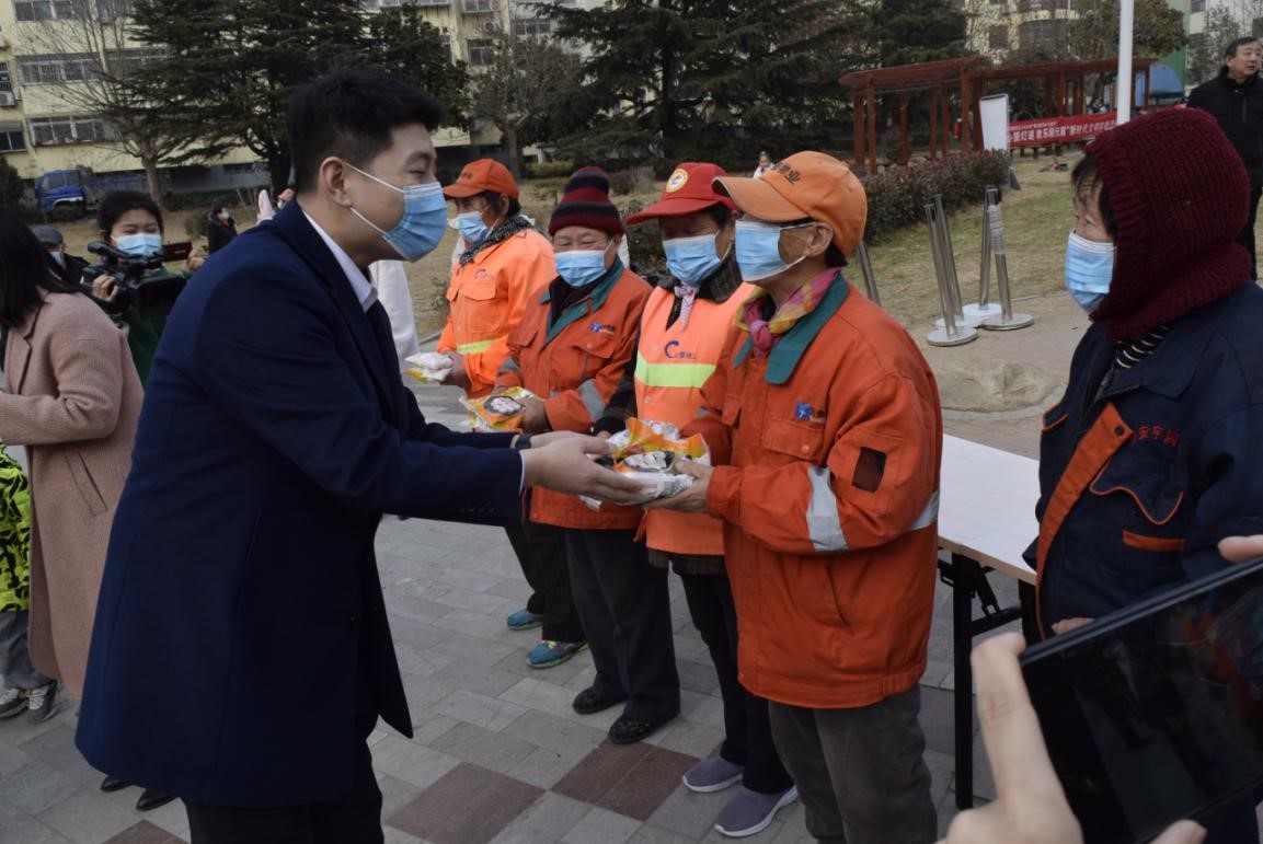 环卫工人是一个城市的美容师,无论风雪交加还是烈日暴晒,都在默默无闻地奉献着,街道的干净、整洁离不开他们日复一日、年复一年任劳任怨的付出。值元宵佳节来临之际,为表达对一线环卫工人的慰问与关爱,2月11日下午,泰安市财源街道办事处乐园社区、华夏保险泰安中支联合组织了关爱环卫工人“元宵佳节”送温暖活动。