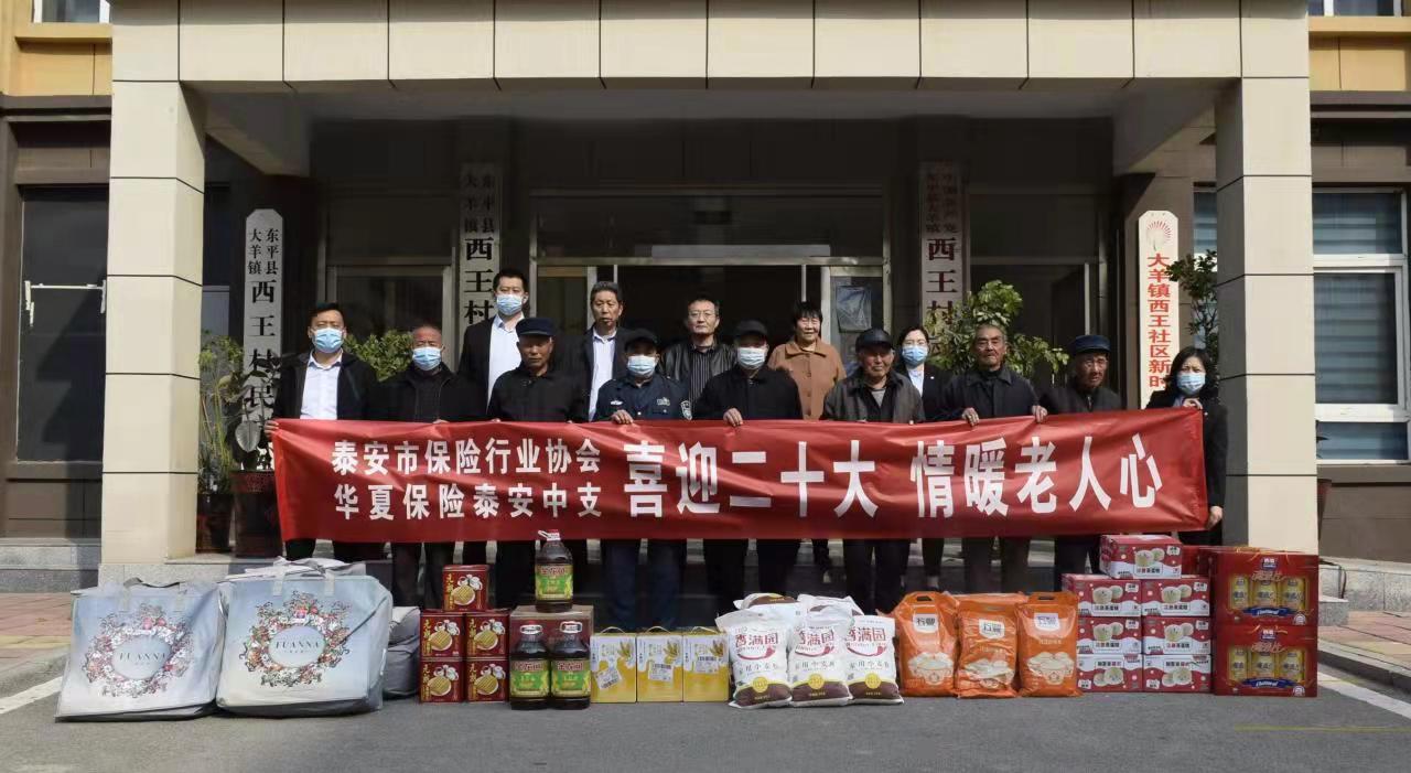 10月28日,泰安市保险行业协会联合华夏保险泰安中心支公司走进东平县大羊镇西王社区开展“喜迎二十大 情暖老人心”走访慰问活动。