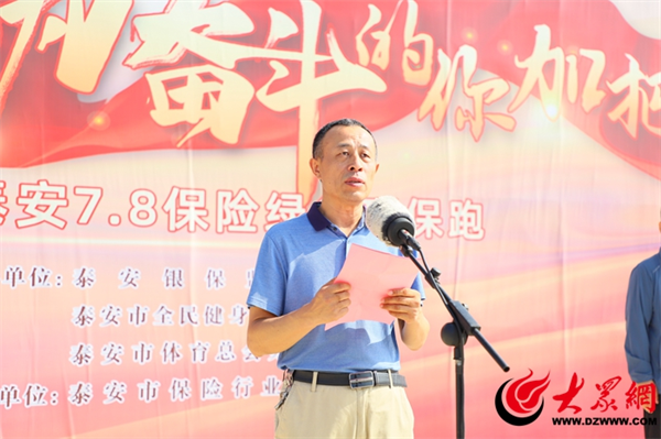 7月7日上午,“奋进新征程 绿色环保跑”活动在泰山天平湖景区顺利举办。泰安市保险行业协会专职副会长刘彬奎,监事长陈秀清,泰安市全民健身服务中心、泰安市体育总会办公室活动科科长刘大伟,大众网泰安站站长李玉坤出席活动;驻泰60家保险公司及部分保险专业中介法人机构员工800余人参加活动。仪式由市保险行业协会秘书长周庆宏主持。