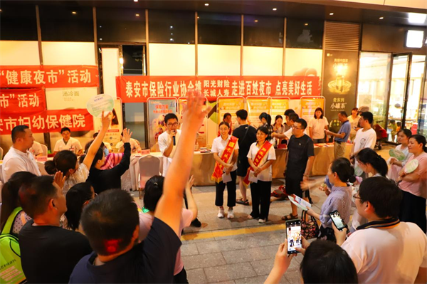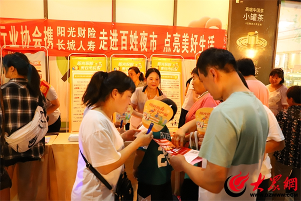 据悉,此次活动由泰安市保险行业协会联合大众网泰安共同开展,阳光财险泰安中心支公司、长城人寿泰安中心支公司等多家保险公司参与,旨在让保险力量走进百姓夜市,点亮美好生活。泰安市保险行业协会专职副会长刘彬奎表示,此次保险进夜市宣传活动作为“保险五进入”活动的重要环节,对普及保险知识等方面起到了积极的推动作用,通过这样接地气的形式,倾听公众需求,开展公益服务,切实提升了人民群众的满意度和获得感。