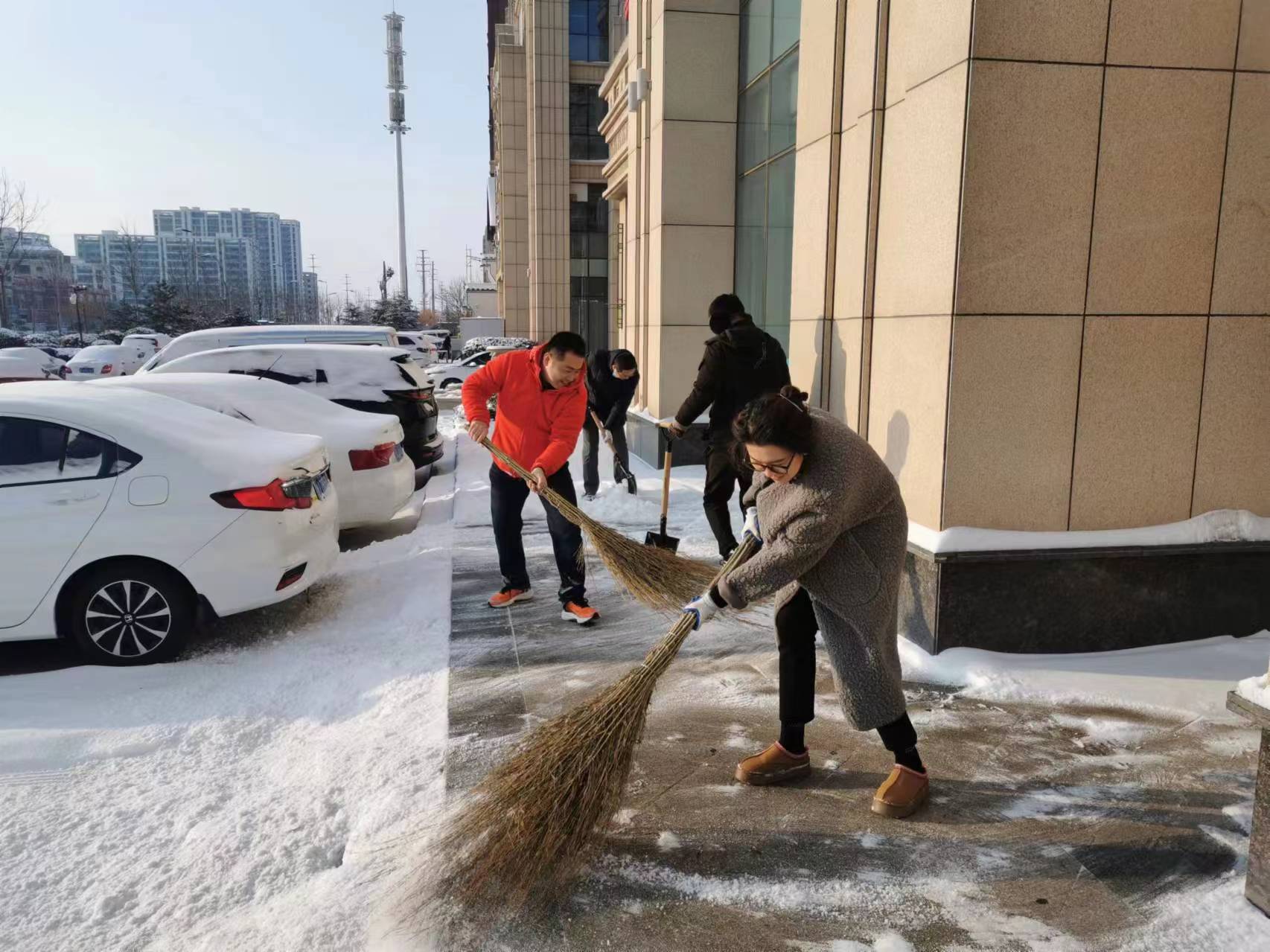 近期,受大范围降雪影响,周边道路多有结冰,新华保险泰安中心支公司组织辖内各机构开展战风雪、保服务,主动清理积雪,送金融服务上门,积极履行社会责任,为广大群众开辟“暖心路”,提供“暖服务”。
