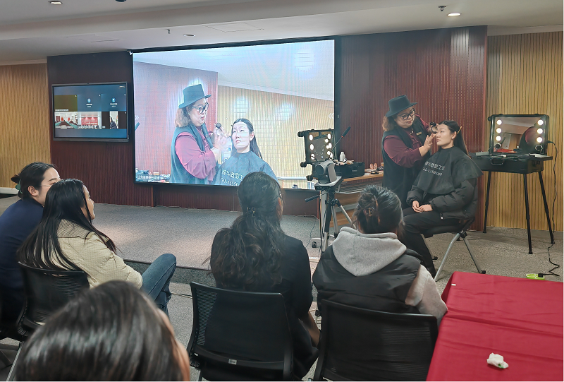 活动现场,邀请了泰安市电视台化妆师进行了精彩的授课。以打造日常通勤妆为切入点,从面部定妆、眼妆、唇妆等一一讲解,让大家进一步了解化妆的步骤及方法,更是邀请现场参与人员上场体验化妆的乐趣,通过实例化妆示范的形式,让大家更能细致掌握。一抹轻柔的粉底,一笔精致的眉毛,不仅是化妆技巧的传授,更是妇女对美的追求,将智慧与美丽融为一体。
