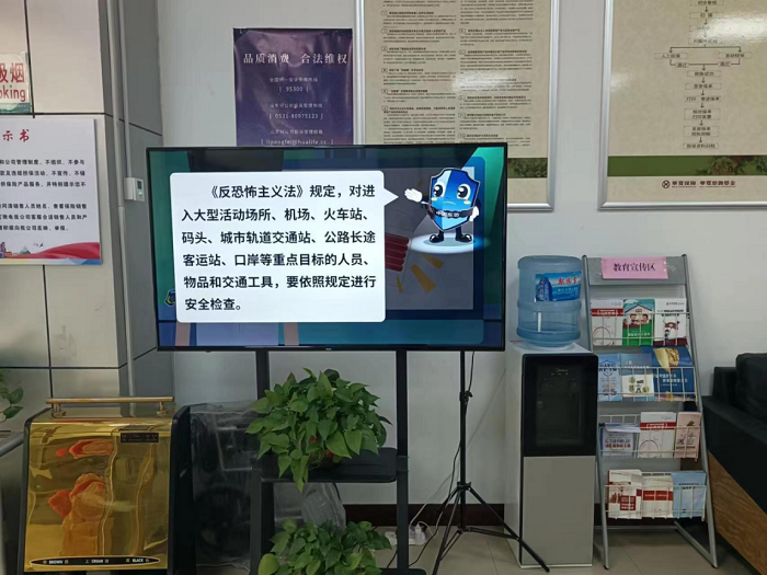 4月1日-4月15日,瑞众保险泰安中支在职场利用LED屏播放国家安全教育日主题,播放反恐怖宣传教育视频,通过向前来办理业务的客户讲解等方式向社会公众普及国家安全教育知识。