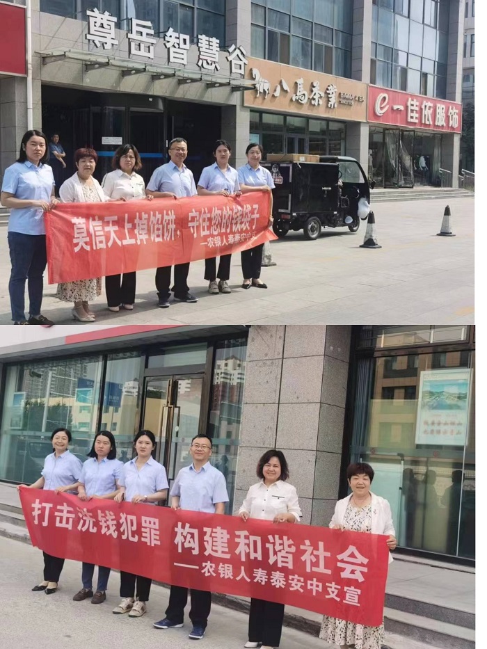 为不断提升社会公众的反洗钱意识,营造浓厚的“全民反洗钱”社会氛围,泰安中支认真落实泰安人民银行关于开展2024年反洗钱集中宣传周工作要求,5月30日,农银人寿工作人员分别深入万达广场、尊岳智慧谷等商圈,在社区广场上悬挂反洗钱条幅,设置咨询台,发放宣传折页,采取有奖问答的方式和社会公众开展互动,并讲解金融知识,对洗钱犯罪、电信诈骗、非法集资等容易给社会公众造成侵害的非法金融活动进行提示与宣传。过程中,工作人员发放防范非法集资金融诈骗宣传手册、反洗钱宣传折页等各类宣传物品60余份,进一步提高了社会公众的防范洗钱犯罪和非法集资知识水平,提高风险识别能力,保护自身合法权益不受侵害。