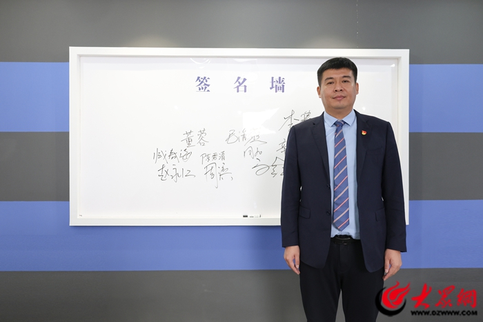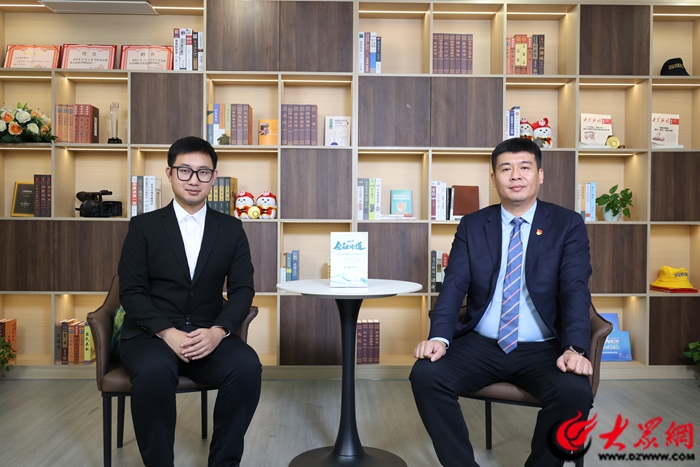 平安财险泰安中支党委书记、总经理周滨做客大众网泰安演播室(记者 兰帅 摄)
