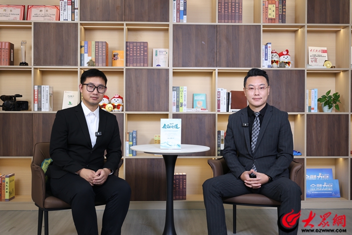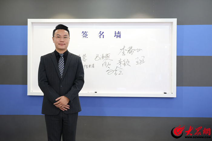百年人寿泰安中支负责人李腾飞做客大众网泰安演播室(记者 兰帅 摄)
