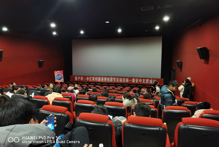 随着新年的到来,共有414位客户携家人应邀参加了本次观影活动。在电影正式开始前,影厅内播放了中汇人寿的宣传片,通过与电影主题相结合的展示和宣传,有效地传递了公司的文化内涵,并向在场的观众展示了中汇的形象。